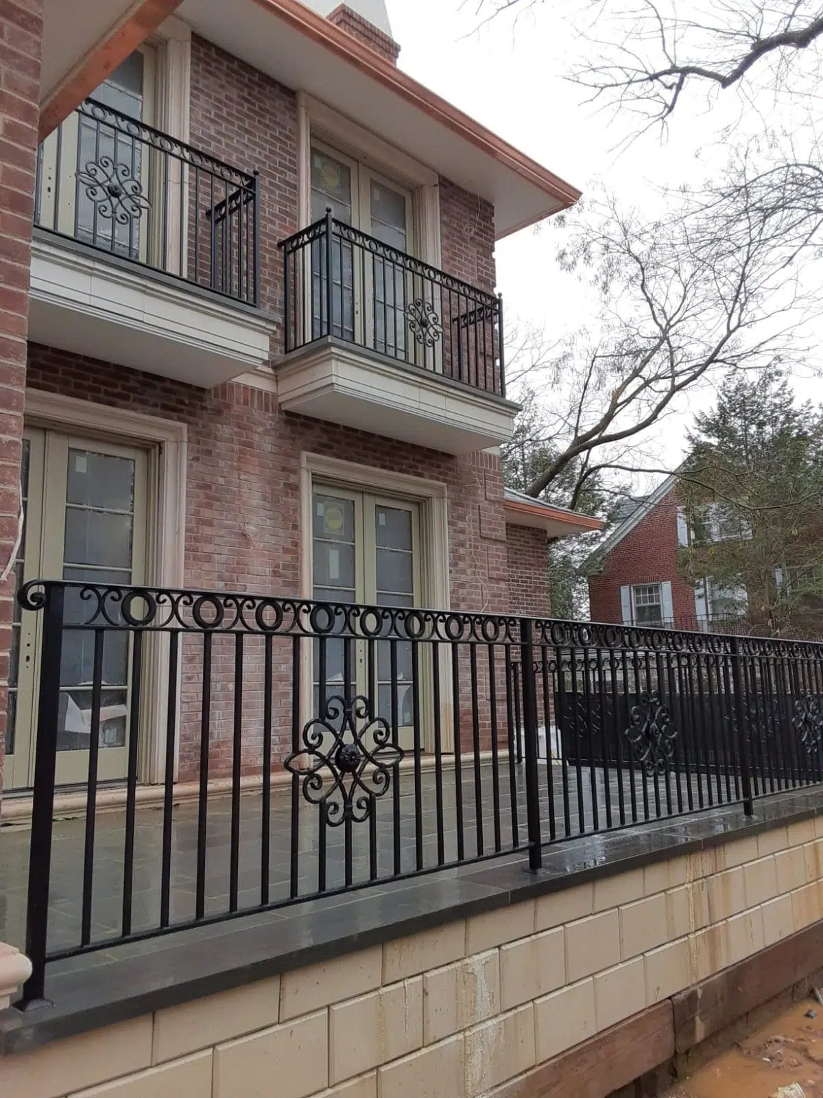 Secure upper-level spaces with decorative iron railings and partitions, often custom-fitted to modern and historic buildings alike.